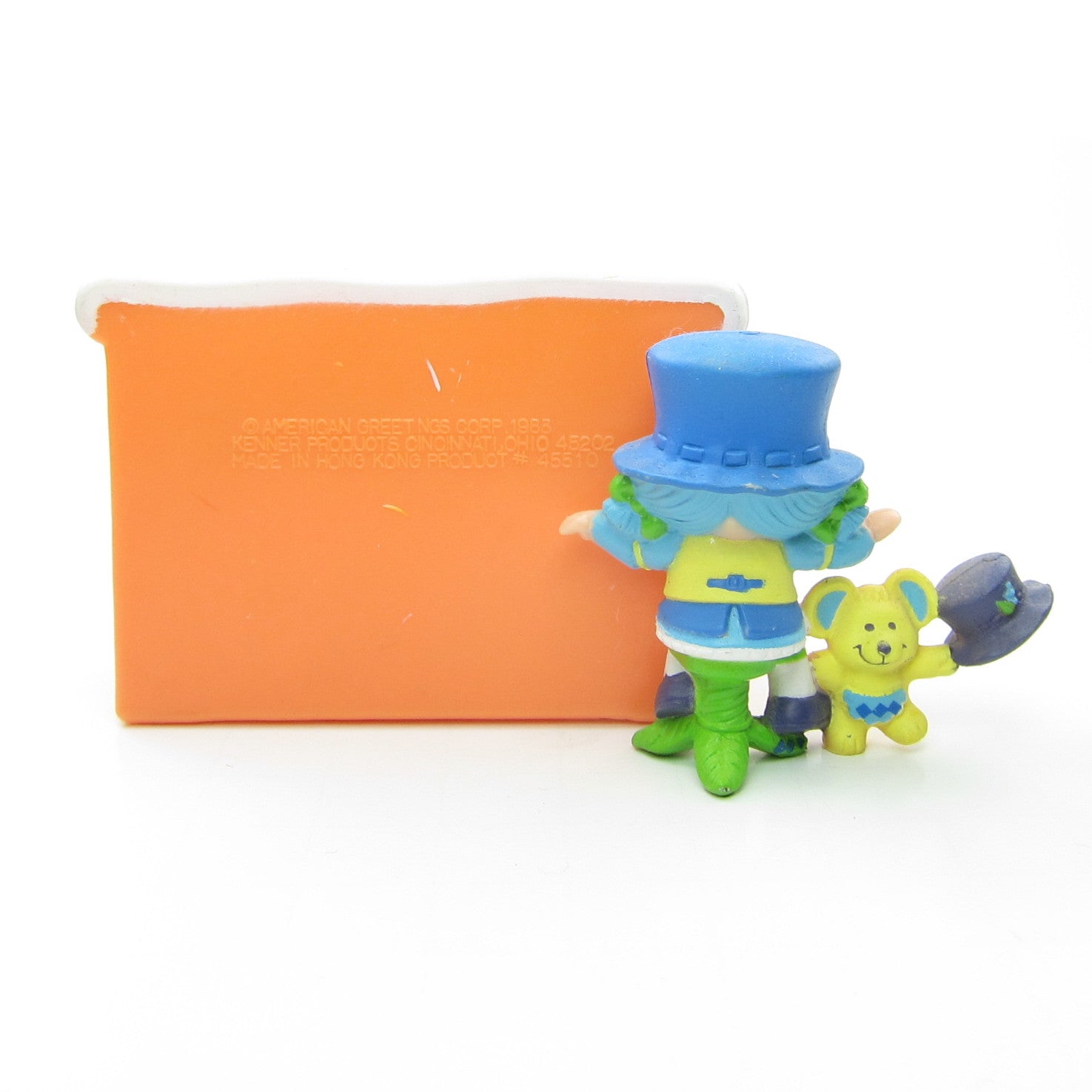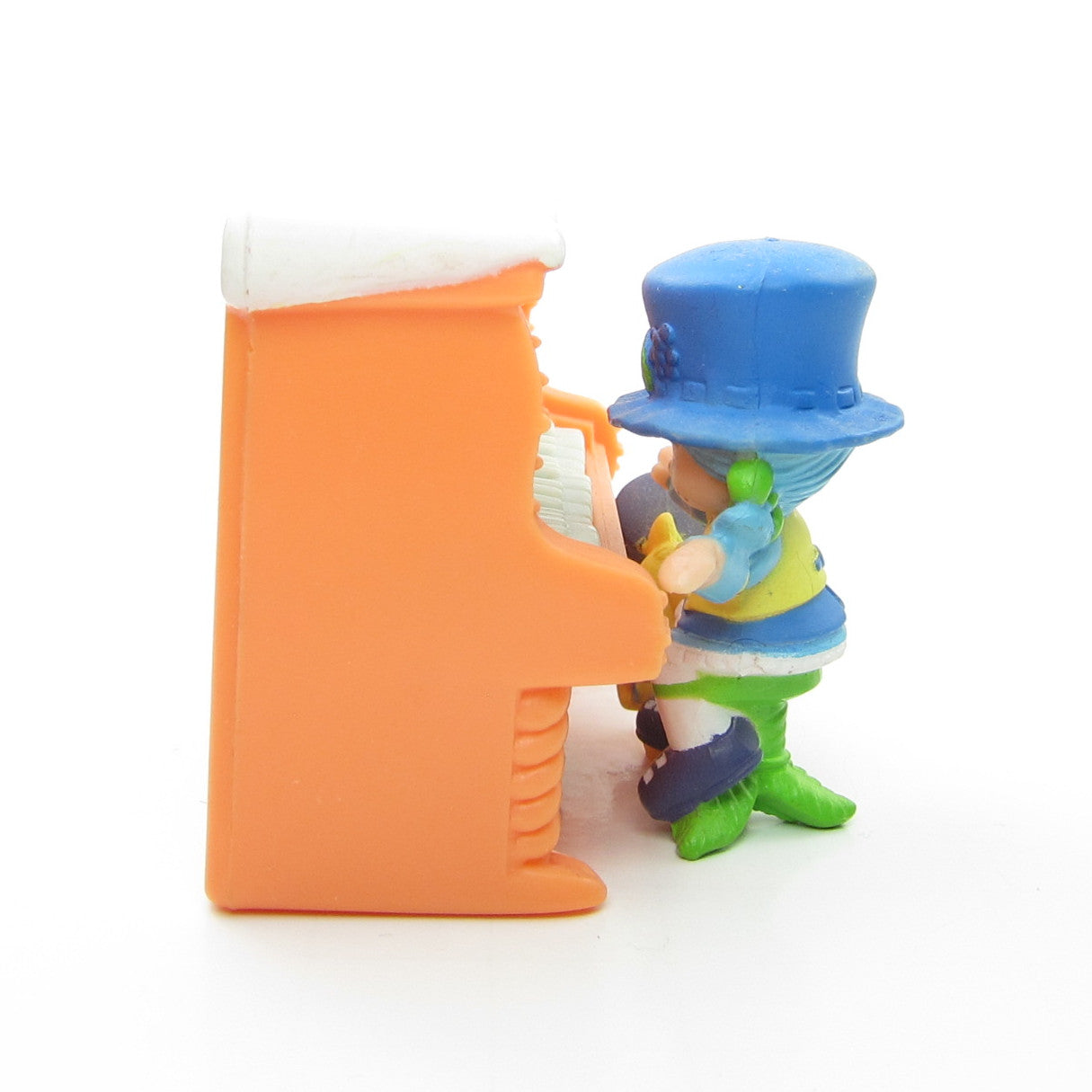 This vintage Strawberry Shortcake miniature figurine set is "Blueberry Muffin at the Piano with Cheesecake." It's one of the Deluxe Strawberryland Miniatures figurine sets.