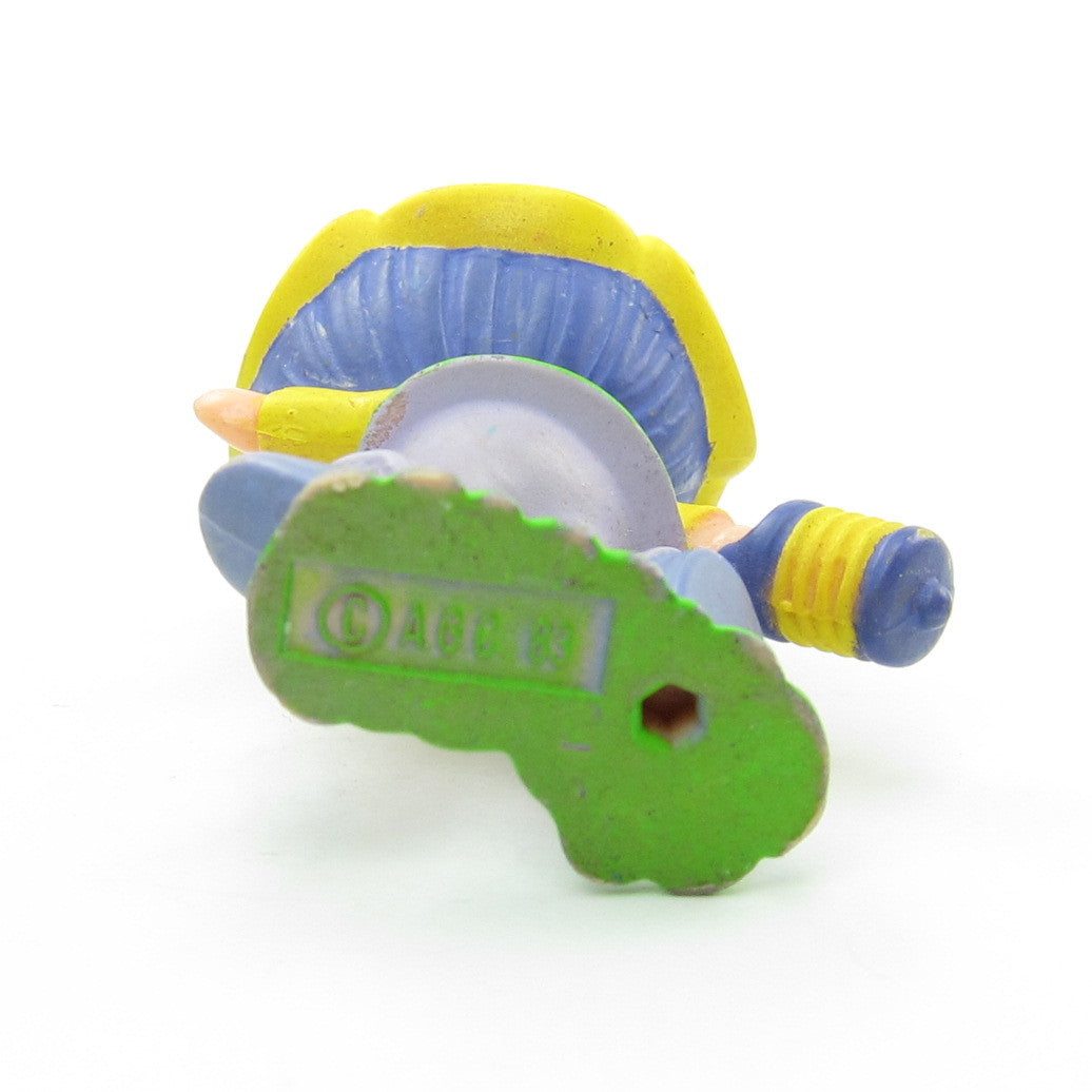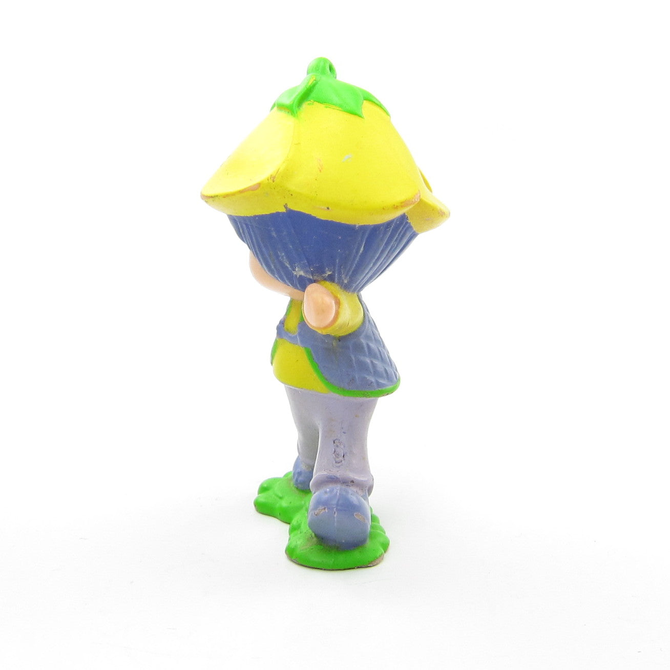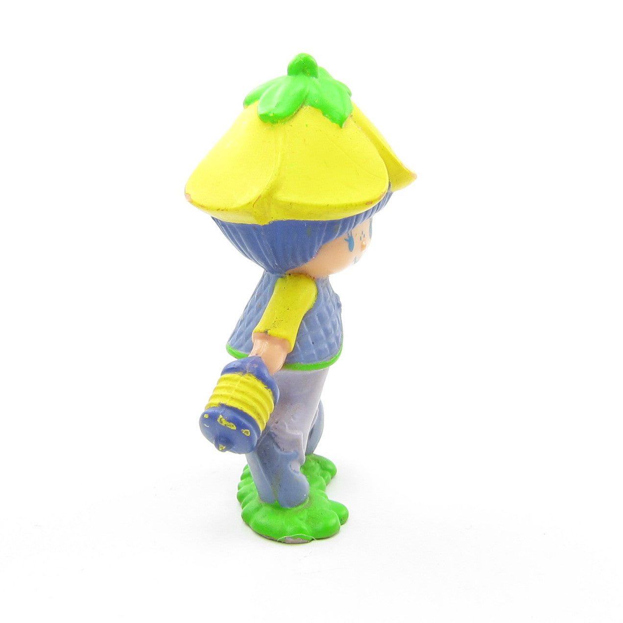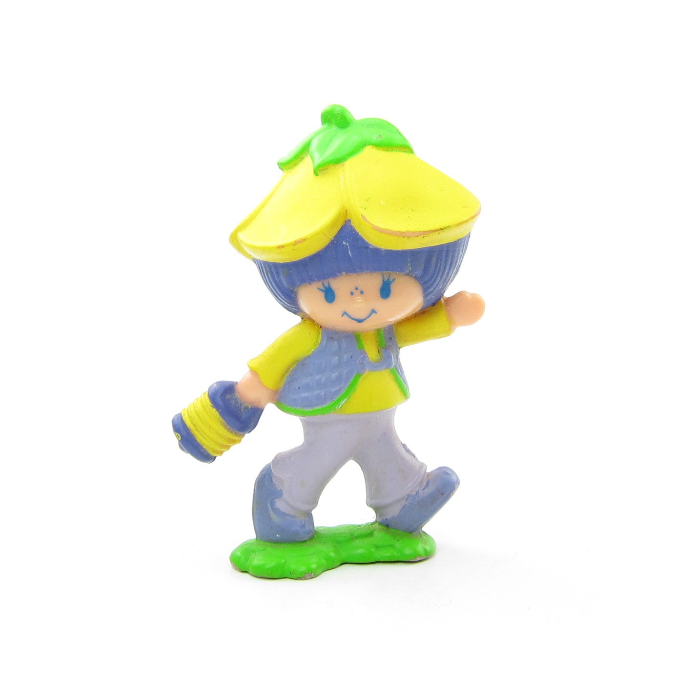 This vintage Strawberryland Miniatures figurine is "Almond Tea with a Lantern." Almond Tea is a Strawberry Shortcake character from the International Friends line and is walking with a lantern in her hand.