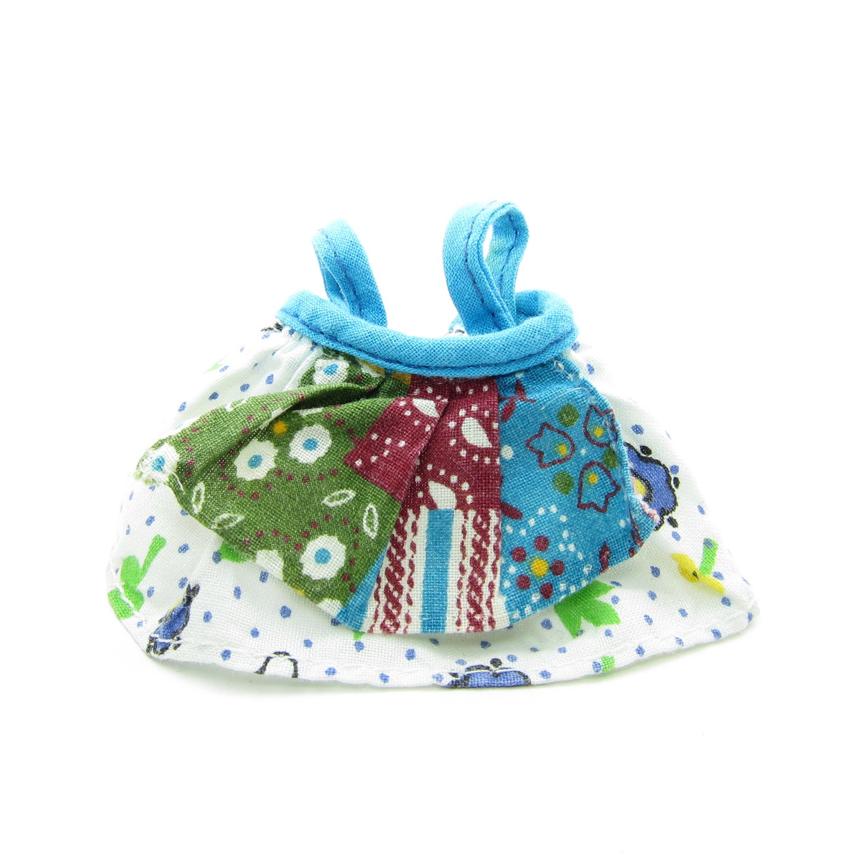 This vintage apron from the 1970s is for a Holly Hobbie doll, it will fit any of the 5 - 6 inch dolls. The apron is most likely from a miniature 6-inch cloth rag doll, but might also fit the poseable dolls of that same size.